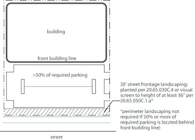 Landscape areas and plant material provided to meet the street frontage landscaping requirements of 20.65.030, the interior parking lot landscaping requirements of 20.65.040, the perimeter parking lot landscaping requirements of 20.65.050, the buffer requirements of 20.65.060 and the screening requirements of 20.65.070 counts toward satisfying the general site landscaping requirements of this section.