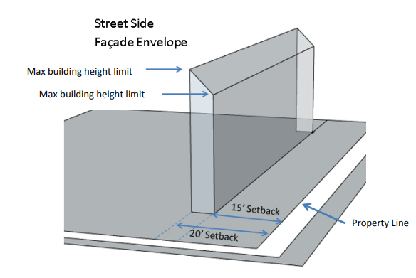 edge of a 30-foot "no build" line that begins at the back of the existing curb and