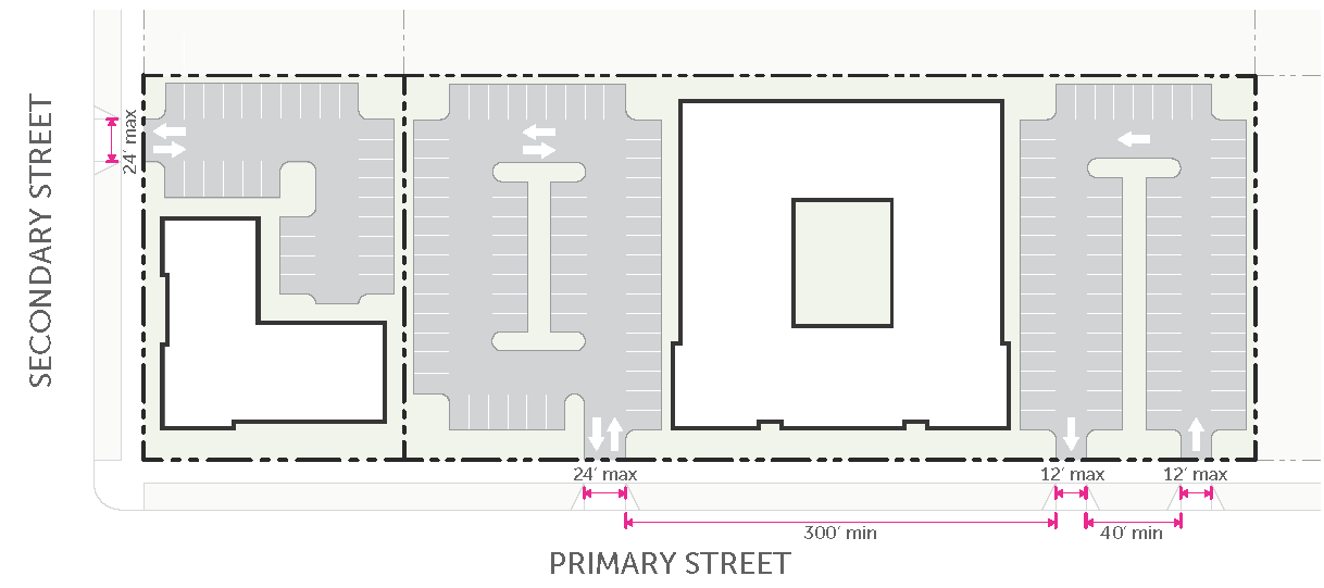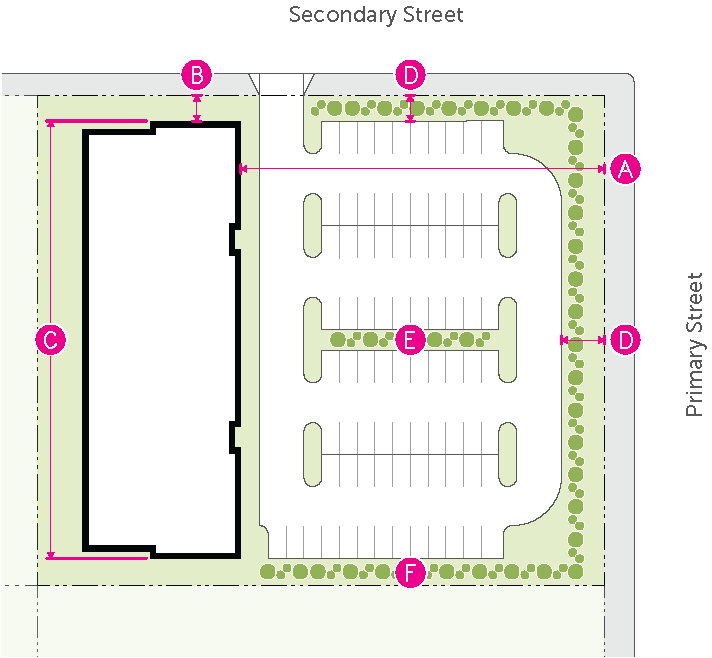 should be limited, with the majority of surface parking located to the side or rear