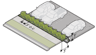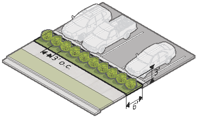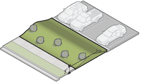 softens the visual impact of parking and buffers the pedestrian. Flexibility in parking