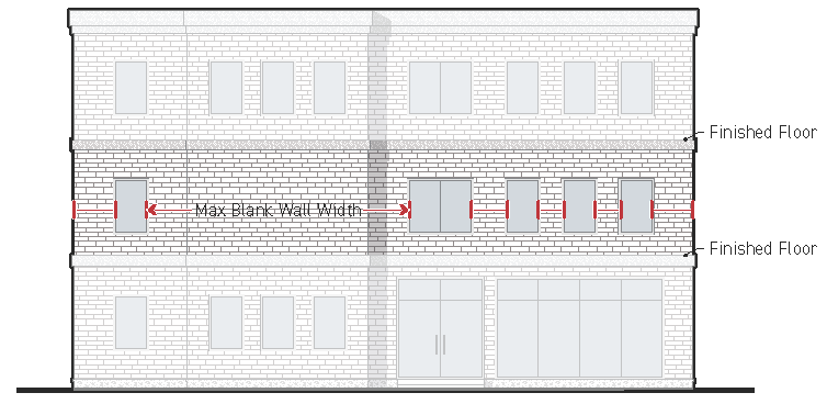 Glazed area requirements shall apply to that area of the ground floor building wall facing a public street up to the finished ceiling height of the first floor building space.