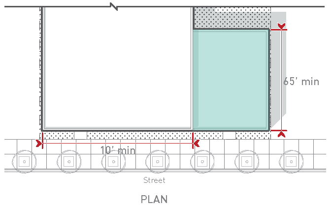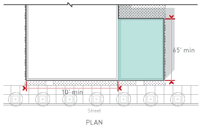 At least 20% of the parcel area on parcels with 50 feet of street frontage or more (as measured along the shorter street frontage on parcels containing multiple street frontages).