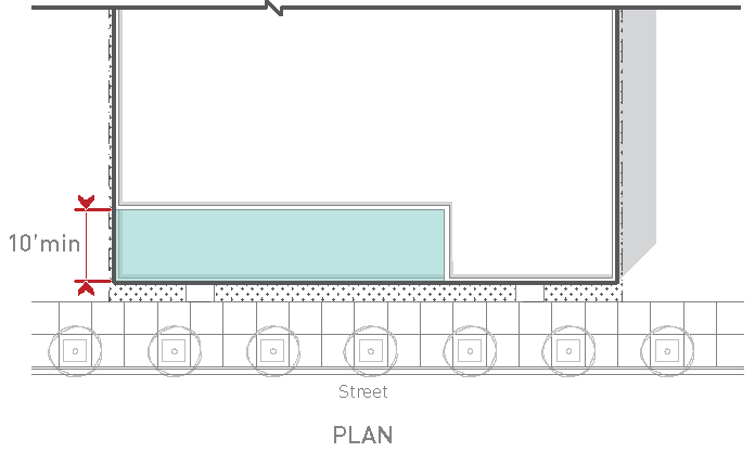 at the street level, and generally built close to the street edge in ways that invite