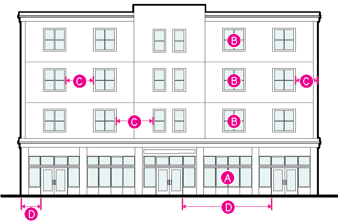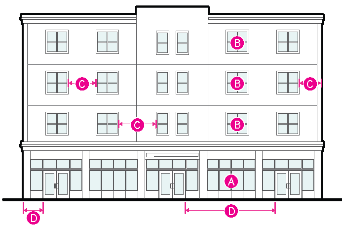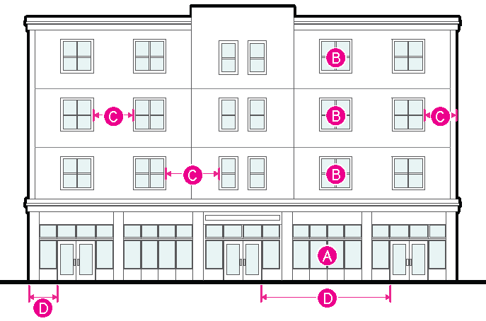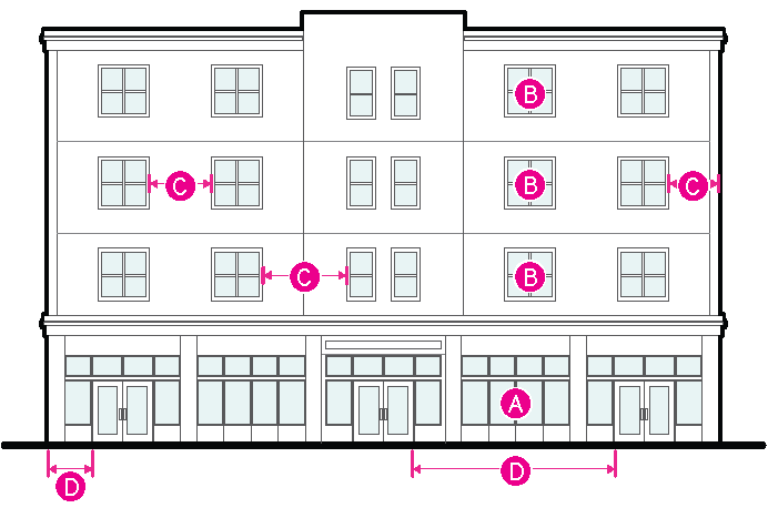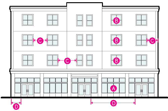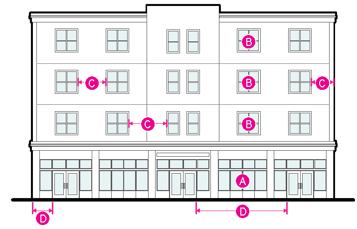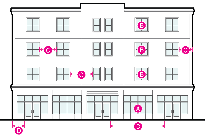 Figure 20.25-2 /P, Pedestrian Overlay, Ground-floor Glazed Area