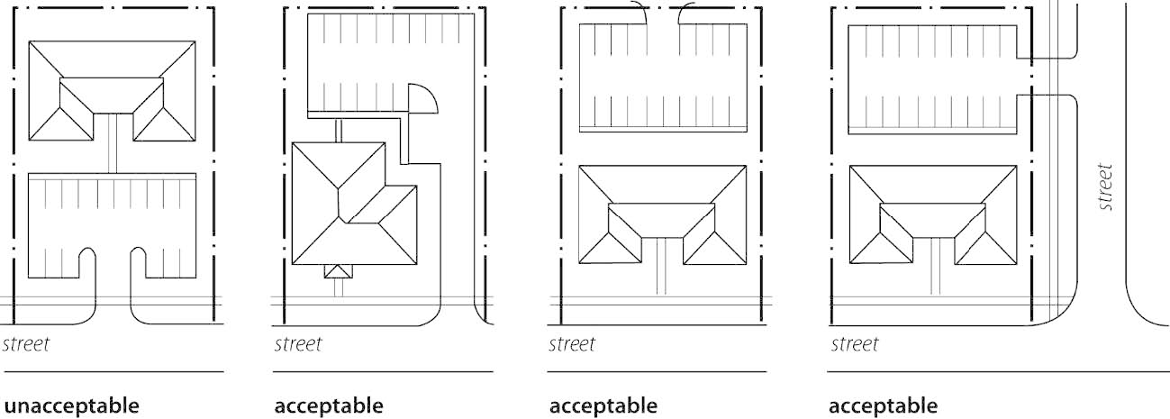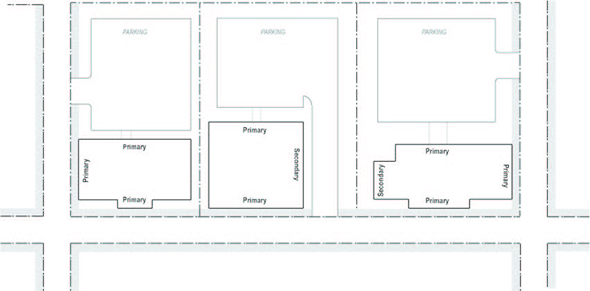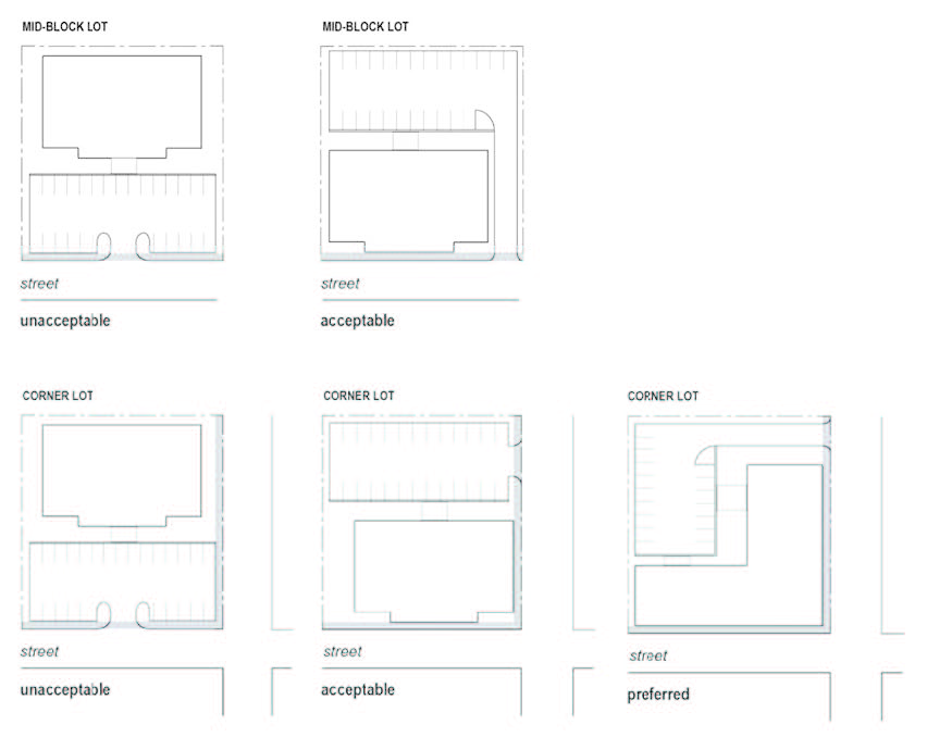 Locate at least 50% of the parking to the side or rear of the building;
