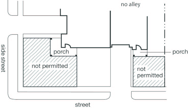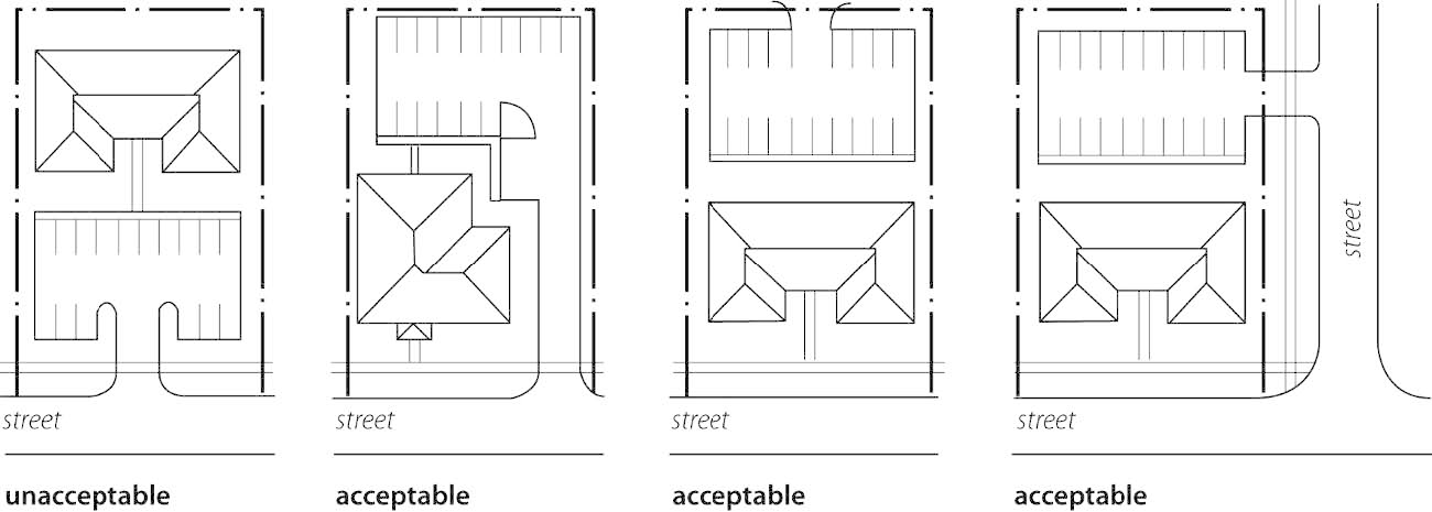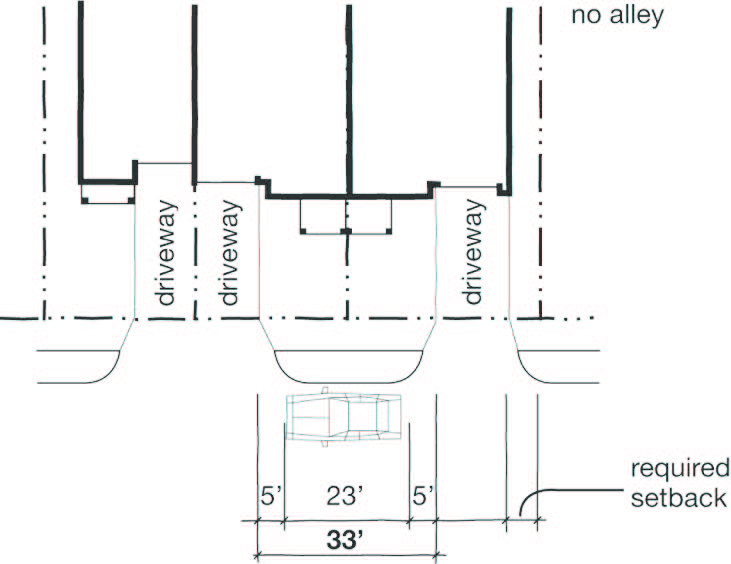 Garage or surface parking access off of a public or private alley must meet engineering requirements.
