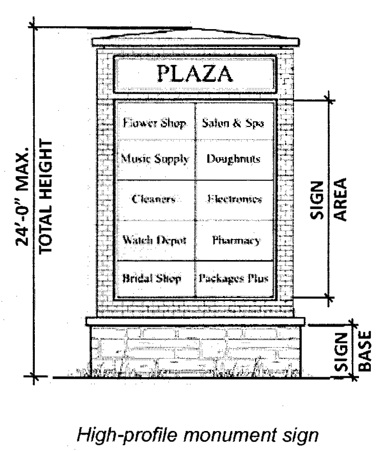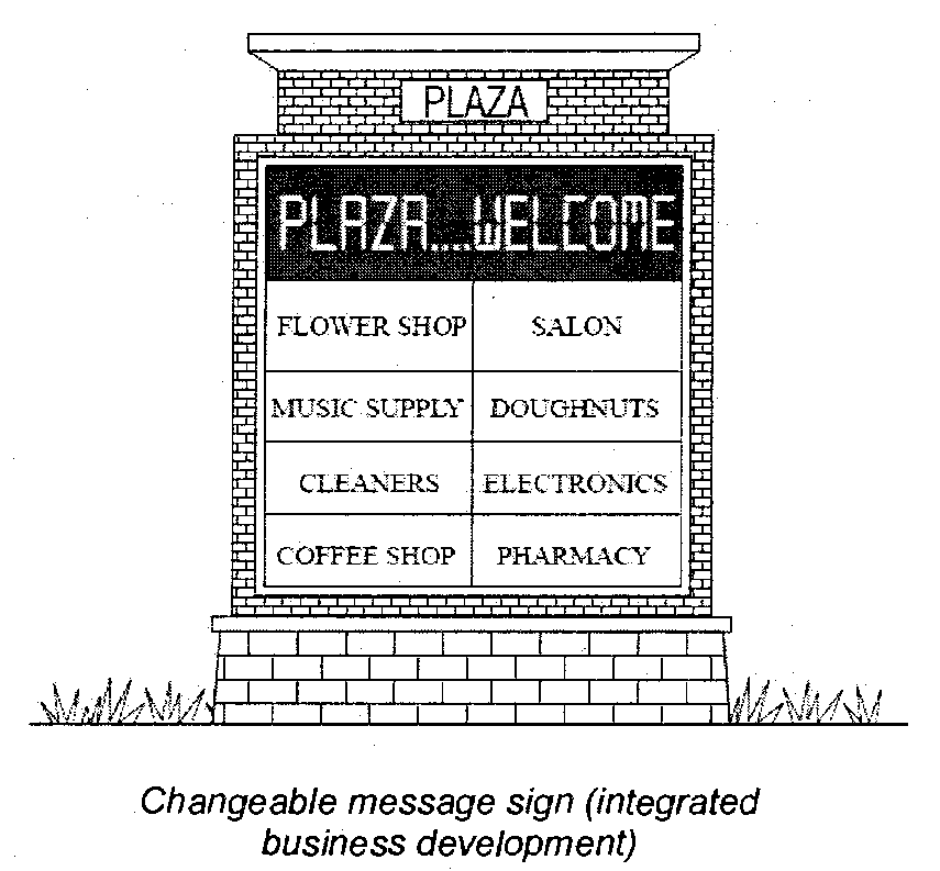 Encourage integrated business developments to develop a set of sign regulations in conjunction with development standards.
