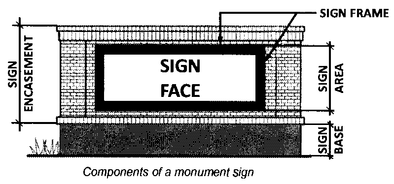 Monument signs. The sign area of a monument sign shall be computed by measuring the area of the smallest geometric shape around the sign face and the sign frame. The sign base and sign encasement of a monument sign shall not be included in the calculation of the sign area.