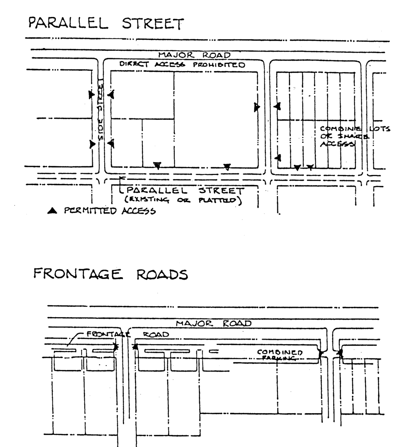 Lots that cannot meet the major road access standard in Section 114-195 shall take access from platted side streets, parallel streets or frontage roads. Such access shall be acquired by installing a parallel street or frontage road, through combined parking lots or by combining lots by sharing drives, or the provision of easements of access. However, if any permanent access is constructed pursuant to an agreement entered into under this section and such construction would otherwise render the structure located on the subject lot nonconforming under any other section of this chapter, then such structure shall be considered conforming under those other sections regardless of the terms thereof.