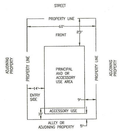 Abutting any public right-of-way other than Subparagraph a. above, including alleys: twenty-five (25) feet.