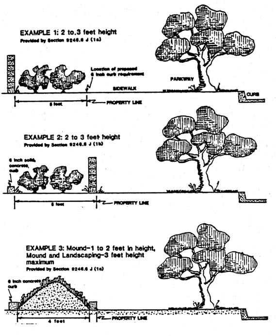 A solar screen type decorative masonry wall or combination solid masonry wall and decorative masonry wall between two and three feet in height shall be constructed and maintained at such property line with a minimum continuous six-inch solid concrete curb located parallel to and not nearer than five feet to such property line; or minimum continuous six-inch solid concrete curb located parallel to and not nearer than five feet to such property line; or minimum continuous six-inch solid concrete curb located parallel to and not nearer than five feet to such property line; or
