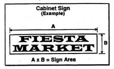 Cabinet Signs. The area of a cabinet sign is determined by the area of the sign face(s) enclosed by a frame or cabinet and is determined by the outer dimensions of the frame or cabinet surrounding the sign area. This includes the total area of the copy and the background. This applies to wall mounted cabinet signs and cabinet signs mounted on freestanding pole structures. (See Figures 17.62.070A and 17.62.070B) Architectural features are not considered in the sign area. (See Figure 17.62.070B)