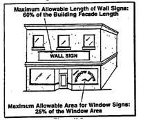 The combined length of all signs placed on a building facade shall not be greater than sixty percent of the length of the facade on which the sign is attached. (See Figure 17.62.100B)