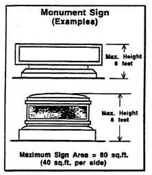 "Monument sign" means a freestanding, low profile structure with a solid base which may be internally or externally illuminated and is affixed in or upon the ground with no air space between the ground and the bottom of the sign cabinet. The sign's horizontal dimension is greater than its vertical dimension.