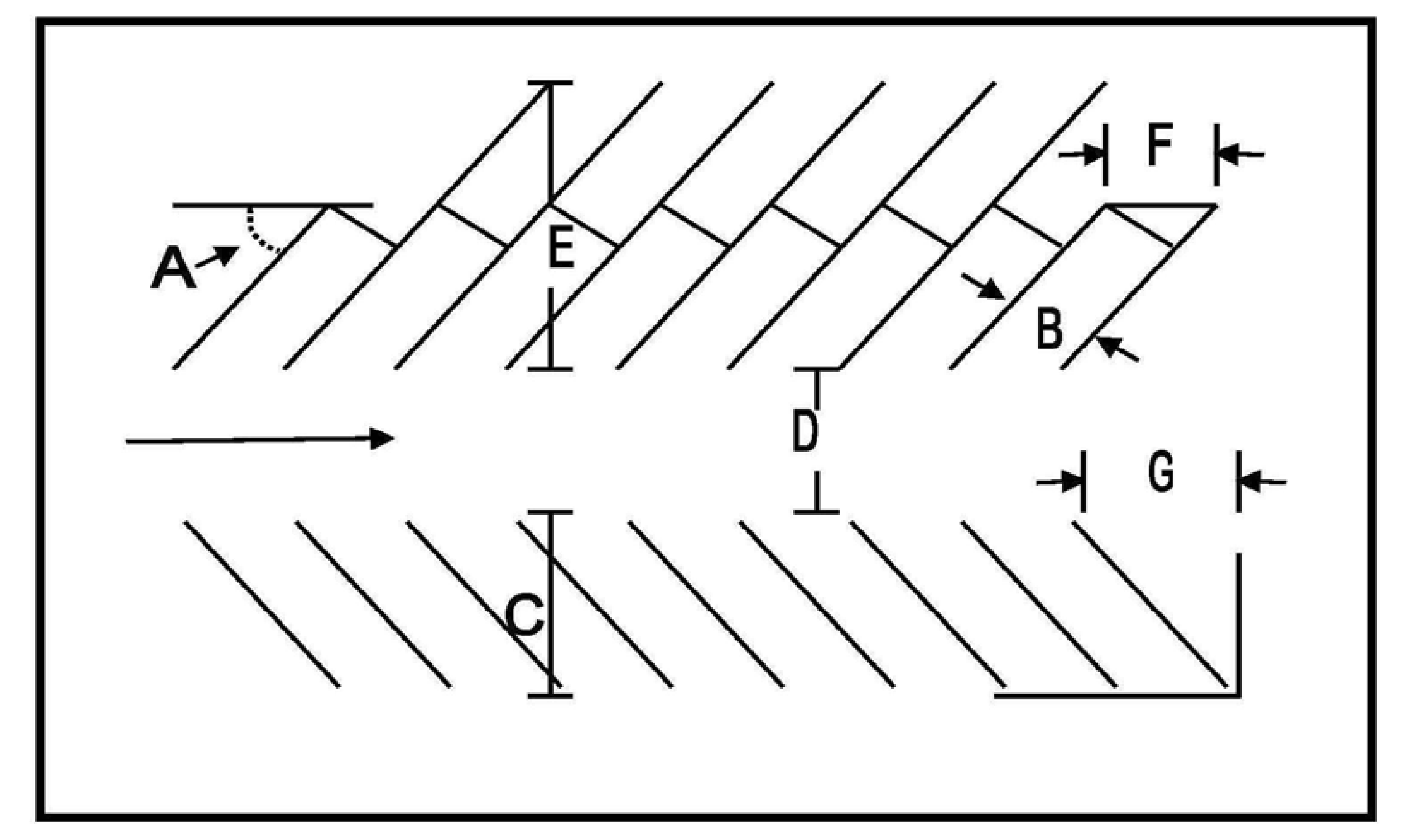 The size, angle, and layout of parking stalls, aisles, and curbs shall conform to the dimensional standards set forth below: