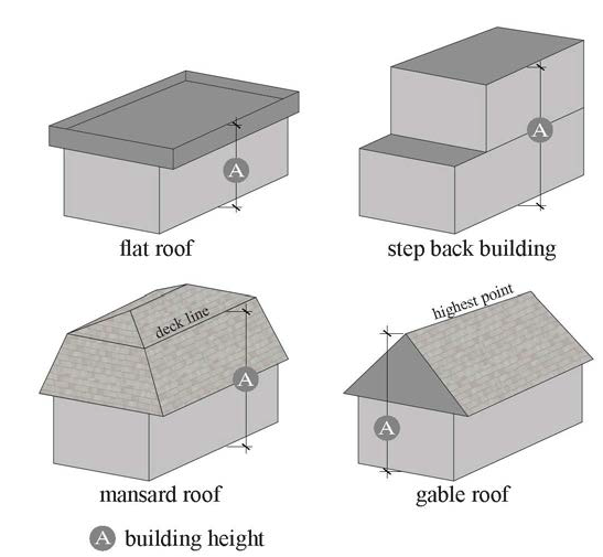 Building Height means the vertical distance above a reference datum measured to the highest point of a flat roof or deck line of a mansard roof or the midpoint of the highest gable of a pitched or hipped roof. The height of a stepped or terraced building is the maximum height of any segment of the building. The reference datum shall be selected by either of the following, whichever yields a greater height of building: