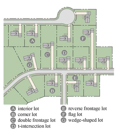 Visibility Triangle means a triangular area on a lot at the intersection of two streets, a street and a railroad, a street and an alley, or a street and a recreational trail, two sides of which are curb lines measured from the corner intersection of the curb lines to a distance specified.