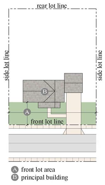 Yard, Front. Front yard means a yard extending across the full width of the lot between the front lot line and the nearest line or point of the principal building.