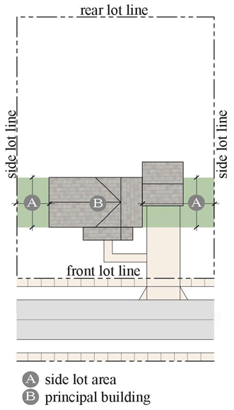 Yard, Side. Side yard means a yard extending from the front yard to the rear yard, the width of which is the horizontal distance from the nearest point of the side lot line to the nearest point of the principal building.