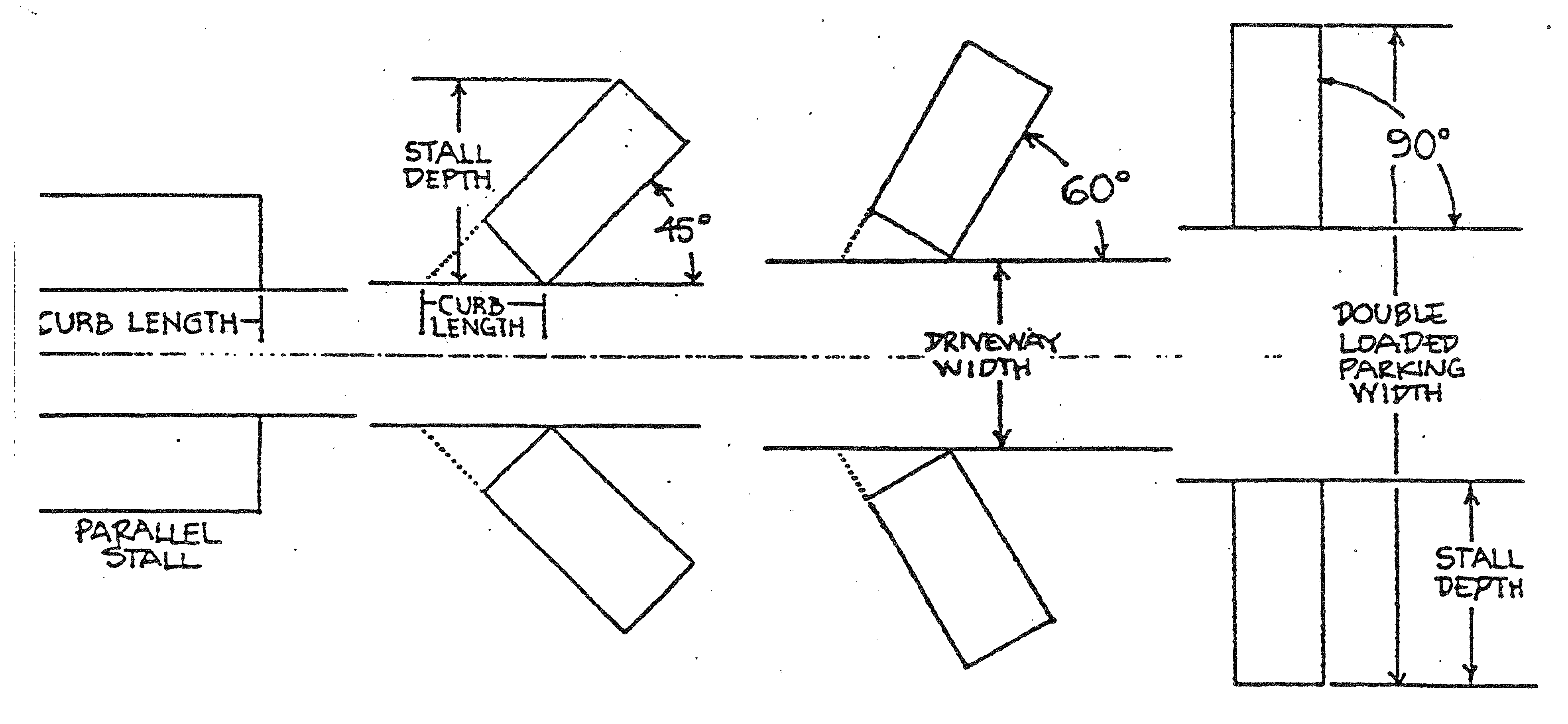 Dimensions of the required off-street parking spaces and driveways shall have minimums as per the following table: