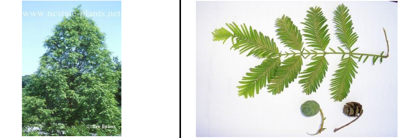 stroboides | 50-90 | 15-25 | Sun; moist, well-drained soil | Pyramidal, conical with single straight trunk | Deciduous; casts medium shade | ![]() |