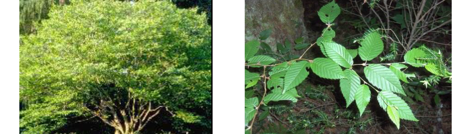 | Lacebark elm, Chinese elm, Drake elm | Ulmus parvifolia | 40-50 | 30-40 | Sun; prefers moist, well-drained soil; tolerates poor soil | Round-headed tree, pendulous branches | Deciduous; durable tree; resistant to Dutch Elm disease and air pollution; bark sheds | ![]() |