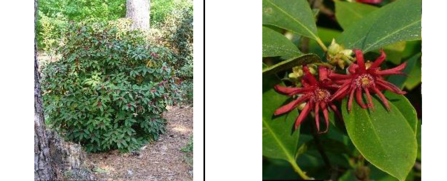 | Sassafras | Sassafras albidum | 30-60 | 25-40 | Sun to partial shade; moist, well-drained soil but is adaptable | Pyramidal in youth; irregular rounded crown with age | Deciduous; native; bark poisonous if ingested (low toxicity) | ![]() |