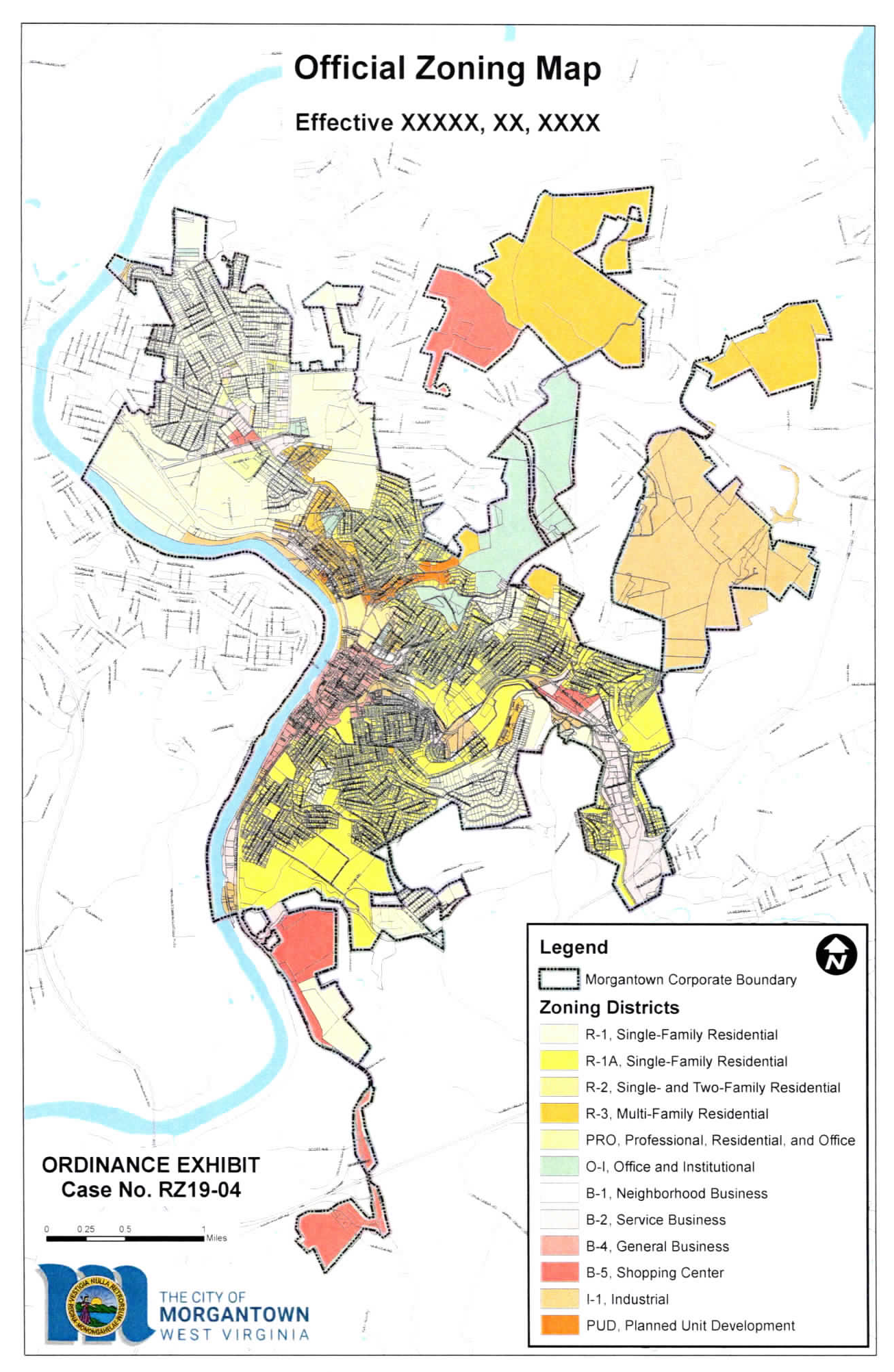 The official zoning map adopted with this ordinance is hereby established as the official zoning map and zoning districts (hereinafter "official zoning map") of Morgantown, West Virginia. The official zoning map designates the respective zoning districts in accordance with this ordinance.