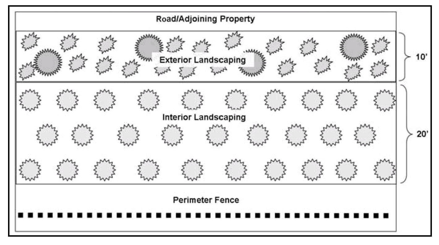 Composting operation sites shall be screened with landscaping, or an opaque fence or wall to a height of at least six feet.