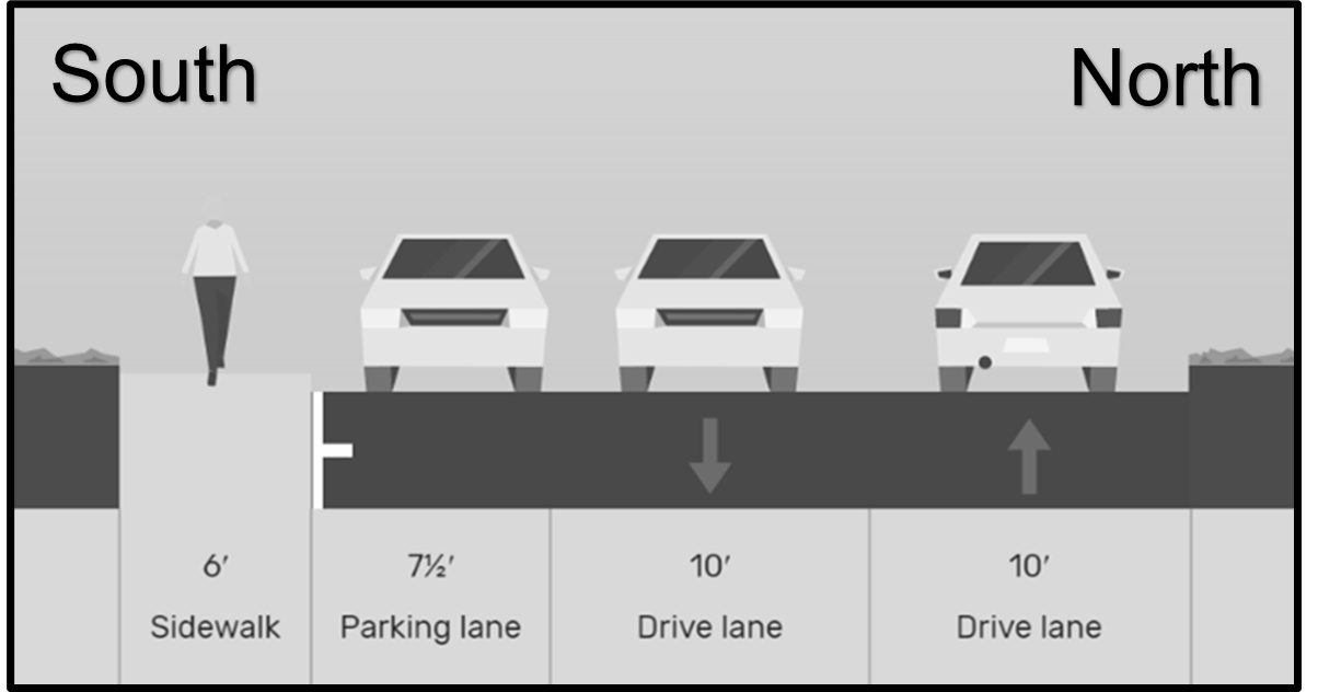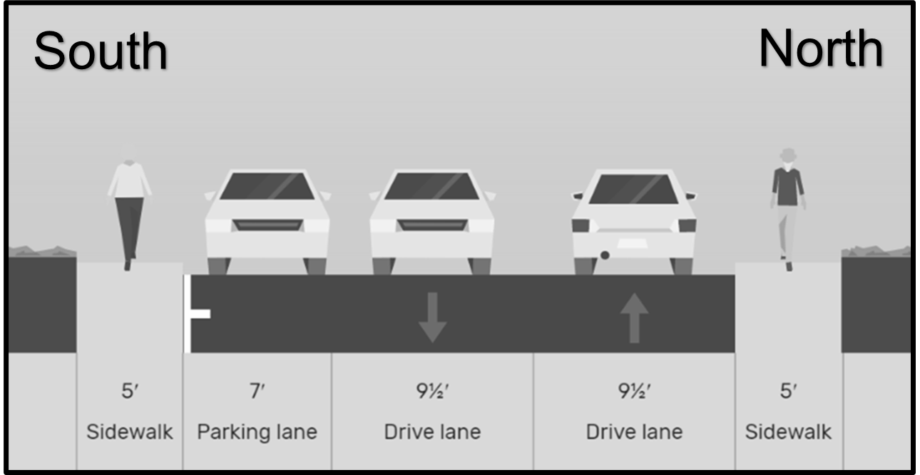 Secondary street means any paved, two-lane street in the Sunnyside planning area not listed as a primary street.