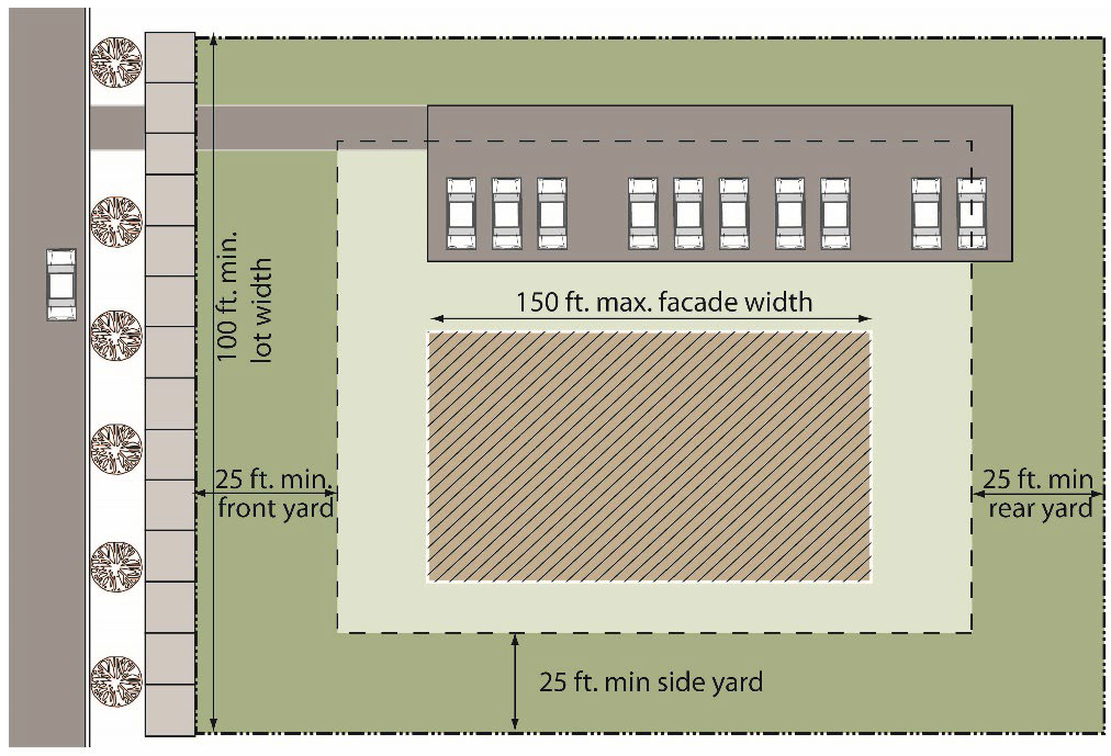 Intent. The RM-2 district is intended for larger scale, planned multi-family development consisting of apartment buildings. RM-2 complexes should be designed with a campus-like character, providing shared open space, landscape buffering, and consistent site design features.