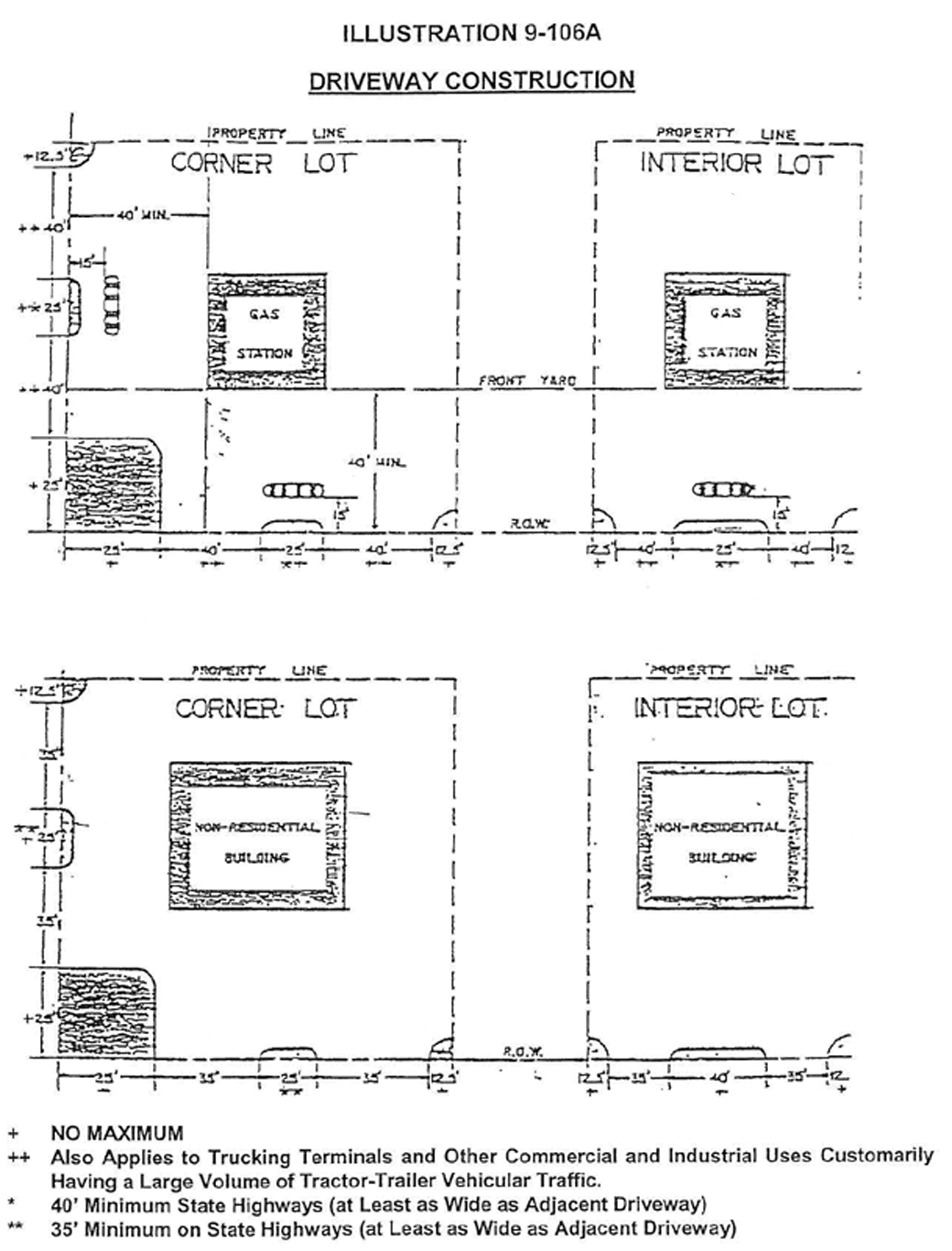 9-106.3 Access control. In order to promote the safety of the motorist and pedestrian and to minimize traffic congestion and conflict by reducing the points of contact, the following access control regulations shall apply (see illustration 9-106A):