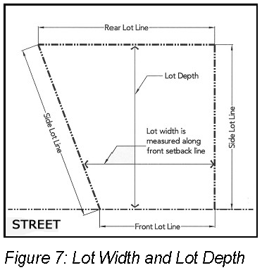 Yard, front means a yard extending the full width of the lot between side lot lines for the required minimum depth, as specified by the zoning district in which such lot is located, measured perpendicular to the front lot line. (See Figure 11: Yards)