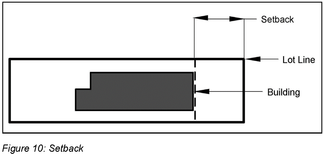 Setback means the minimum distance by which any building or structure must be separated from a property line. (See Figure 10: Setback)