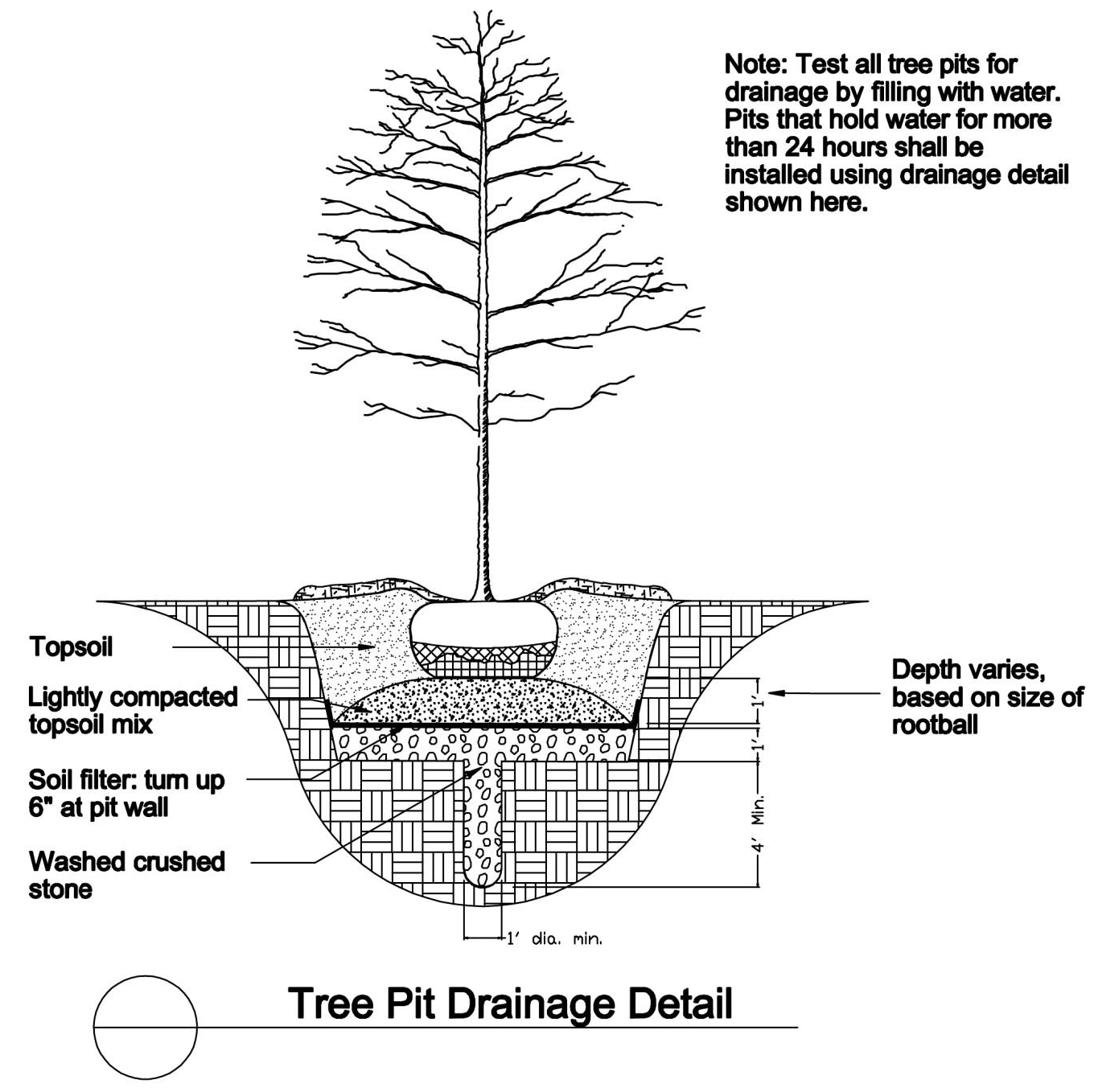 The depth of the hole dug should be about 10% less than the distance from the top-most root (measured where it joins the trunk) to the bottom of the rootball. The width of the hole shall be at least 2 times the width of the rootball.
