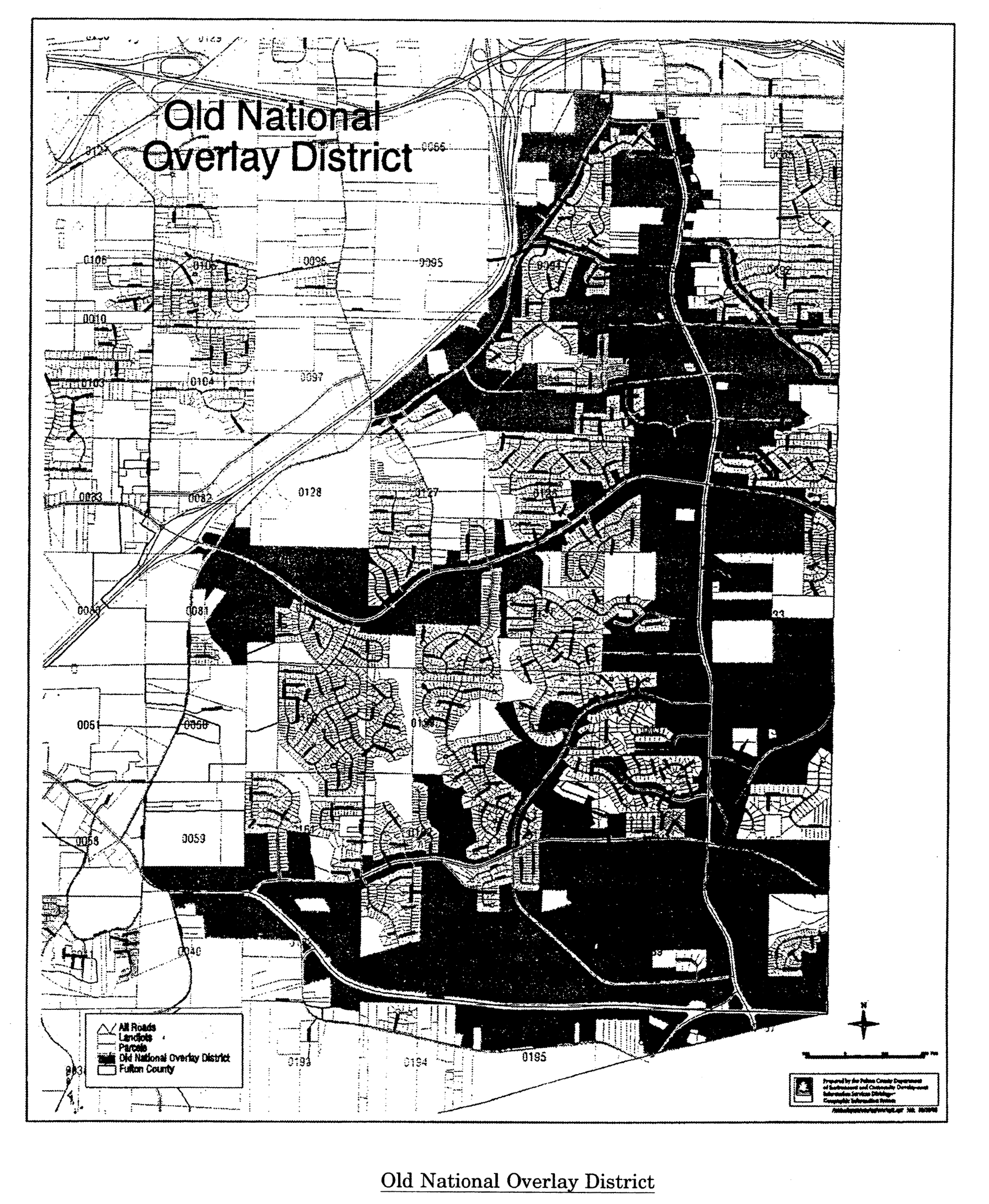 The Old National Highway Overlay District applies to all properties zoned or developed for nonresidential and residential uses (except single family detached dwelling units) which have frontage on Old National Highway or have direct access to Old National Highway, or are located on streets that intersect Old National Highway in Fulton County between the City of College Park limits, Union City limits, and Fayette County (see attached map). Within the Old National Highway Overlay District, land and structures shall be used in accordance with the standards of the underlying district.