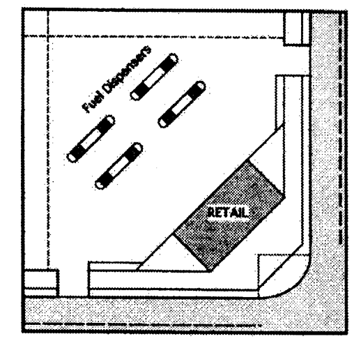 Fuel pumps, canopies and associated gasoline station service areas shall be located at the rear of the structure, not between the building and the street, to allow the building to be the spatial edge of the streetscape.