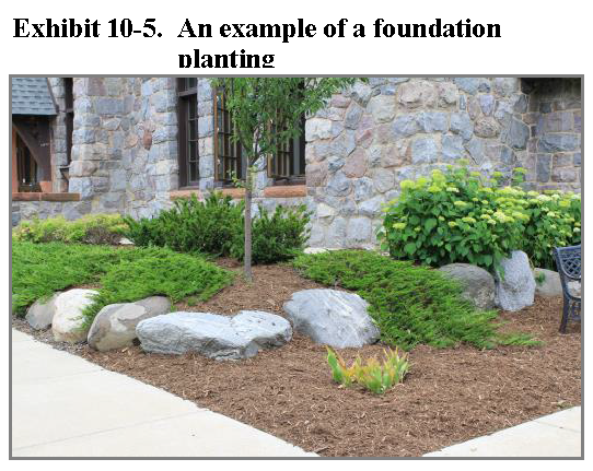 Use of various plant types. Tall and medium trees shall not be used to meet building foundation landscape requirements. The intent of this section is to require a visual break in the mass of buildings and to require a visual screen of a minimum of five feet in height for all exterior perimeter appurtenances, such as ground-mounted HVAC units and utility boxes.