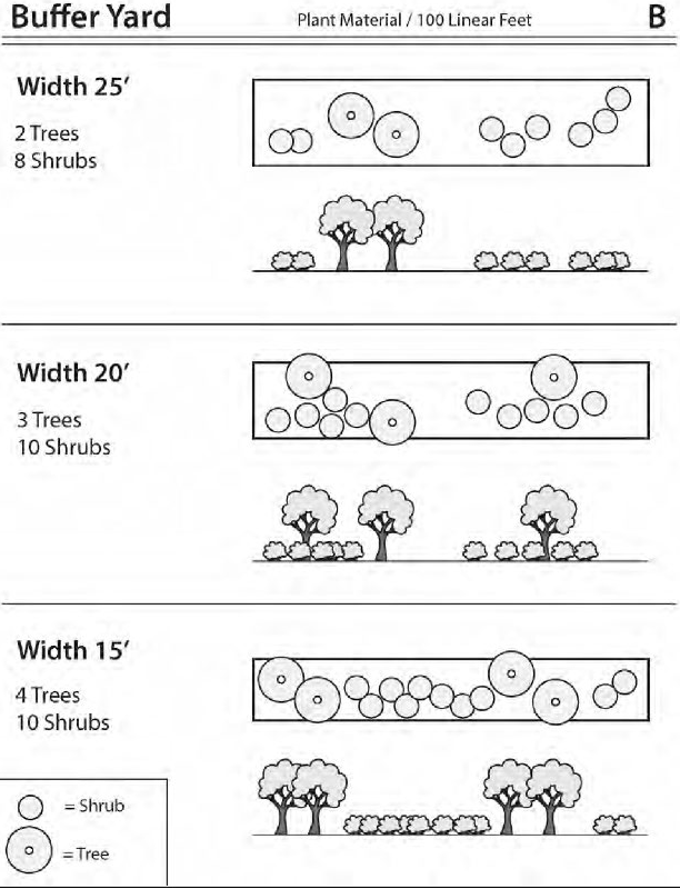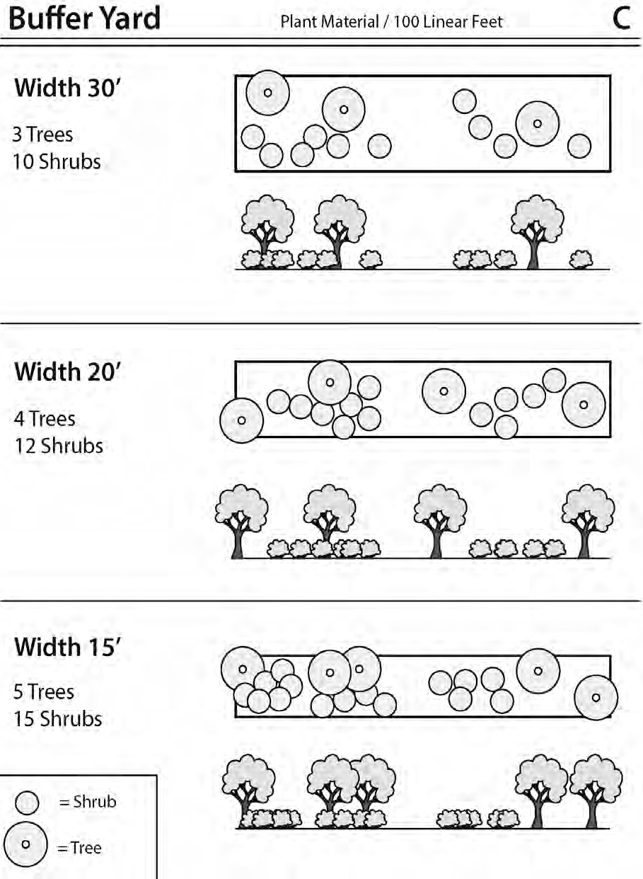 Buffer in lieu of screening. Where an outdoor storage facility does not abut a public street or highway, a vegetative buffer may be permitted in lieu of screening. Such buffer may be approved by the city commission after a finding that the proposed buffer would provide screening equivalent to that required in (B) above.
