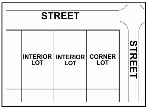 For reference, a typical corner lot is a lot situated at the junction of, and abutting, two (2) or more intersecting streets. See Figure 20.28-2: Corner Lot below.