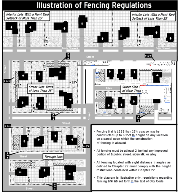 All fences located with sight distance triangles as defined in Title 10, Chapter 28 must comply with the height restrictions contained within Title 10 Chapter 28.