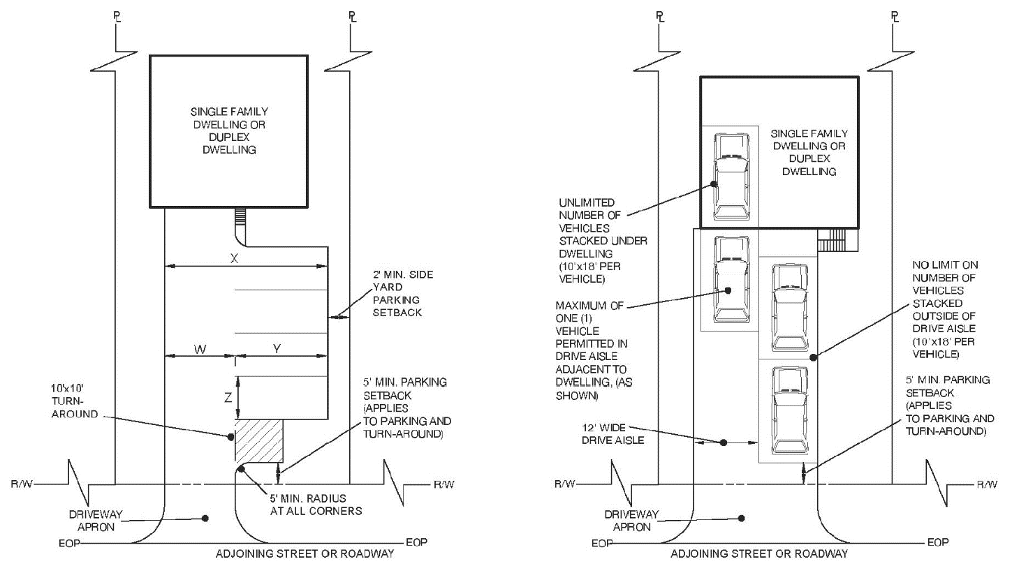 aisle is prohibited. Stacking of vehicles under the dwelling or outside of the required