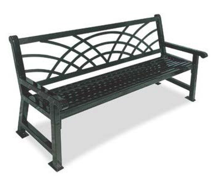 Six foot (6') "Savannah Bench"—"Morning" Style—Surface Mounted, in the color "black."