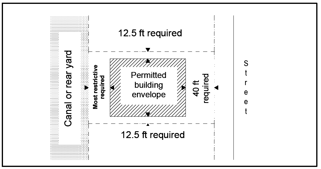 Rear yard: 15 feet, except for lots adjacent to a residential zoning district, on which the minimum rear yard requirement is 50 feet; and for lots adjacent to a water body, on which the minimum rear yard requirement is 25 feet.