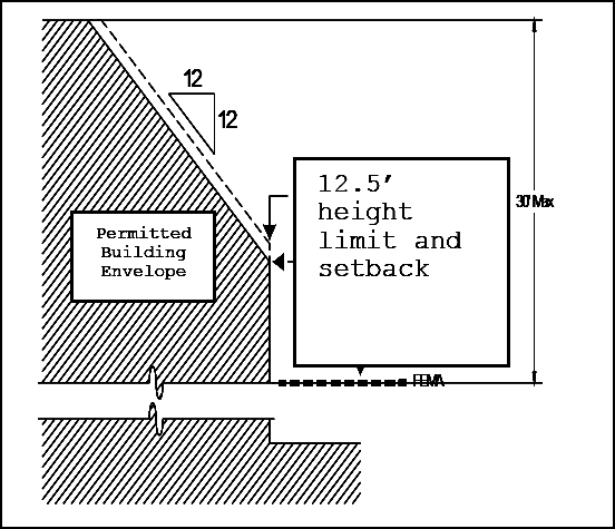 Additional height must remain within a 12:12 slope beyond the initial setback.