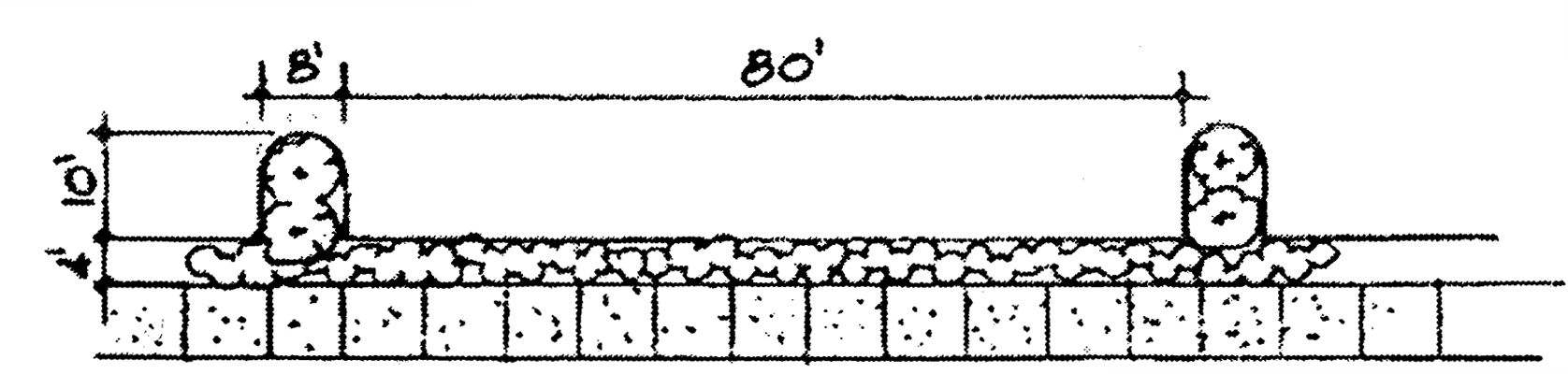 80 feet maximum between bulb-outs; minimum 8-foot bulb-out, 16-foot at corner locations; best engineering practices.