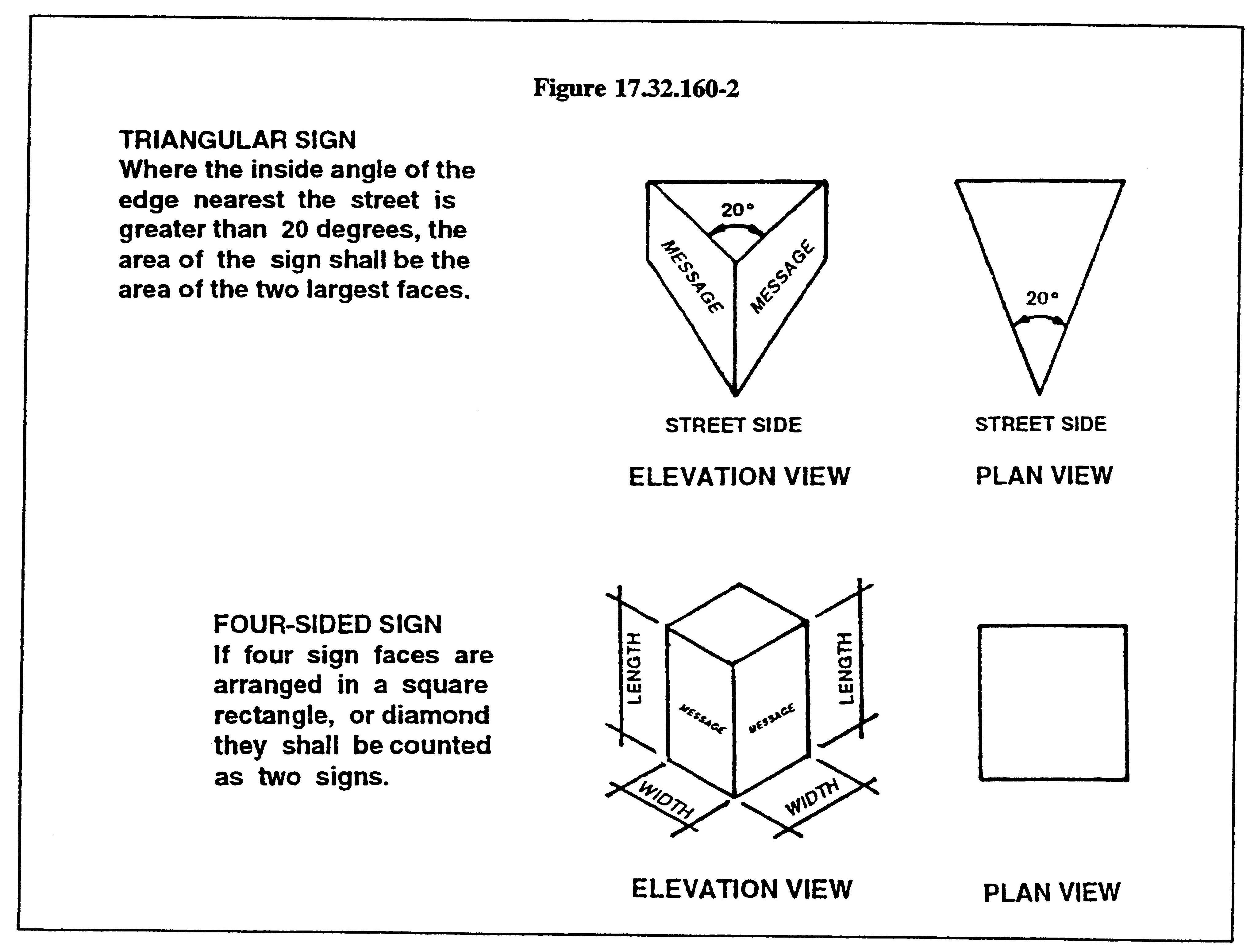 Triangular On-Premises Sign. Where the inside angle of the edge nearest the street is greater than twenty degrees, the area of the sign shall be the area of the two largest faces.