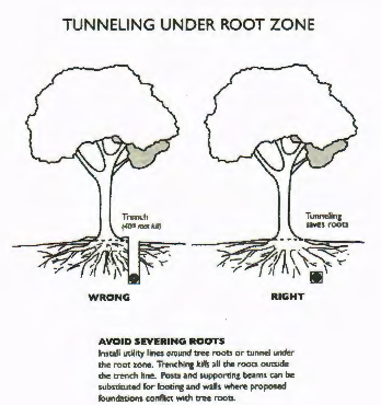 Achieving greater energy conservation by maximizing the shading and cooling effects of existing native, healthy trees and native replacement trees;