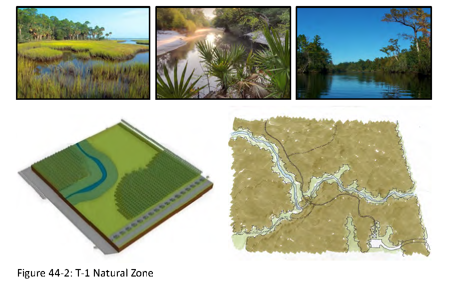 The specific boundaries of the T-1 transect may be adjusted as additional or refined data becomes available during development review, subject to state and federal permitting. The final delineation will be established during development approval through the Nassau County Development Review Committee. As T-1 areas are further refined, the new uplands shall utilize the adjacent transect designation.