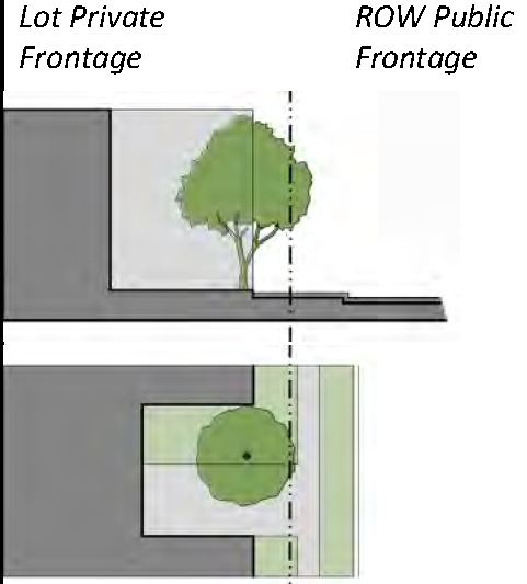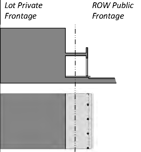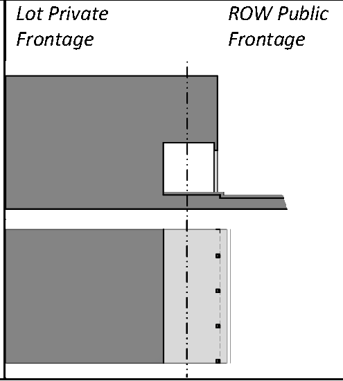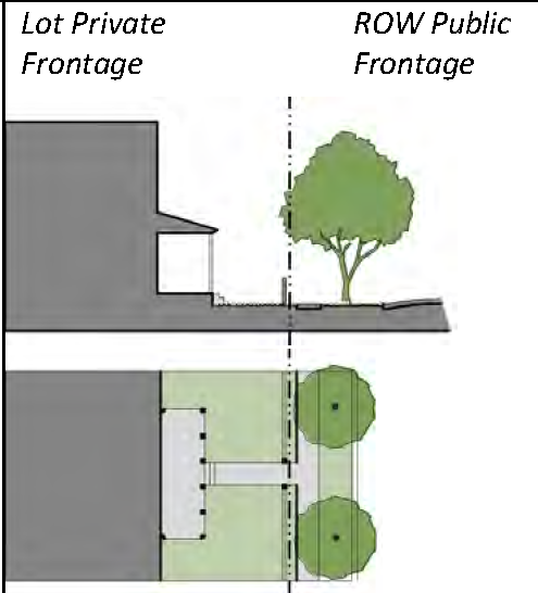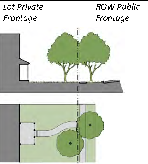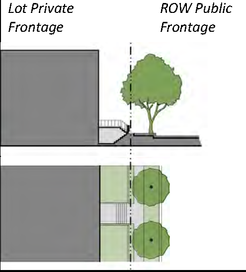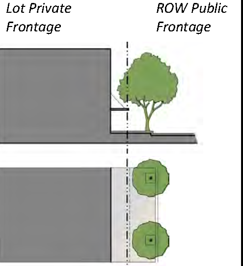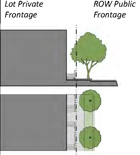 Public Frontage: The area between the curb and the private frontage line, which is typically dedicated for public use. Public frontage includes sidewalks, streetscapes, and other elements of the public realm that enhance pedestrian access, safety, and the visual appeal of the area.